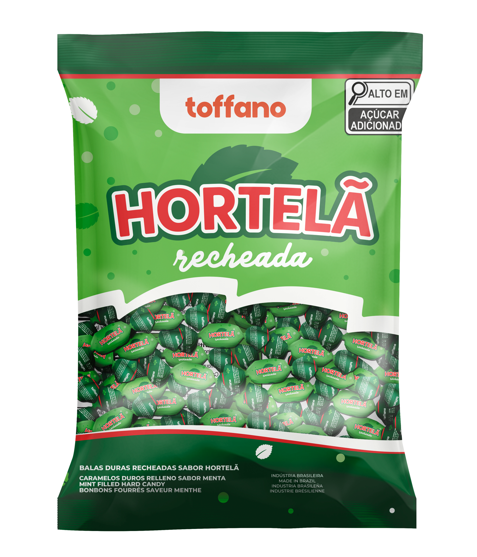 Açúcar Cristal, Xarope de Glucose, Aromatizante Hortelã, Aromatizante, Corante Tartrazina, Corante, Corante Indigotina, Água, Recheio Hortelã